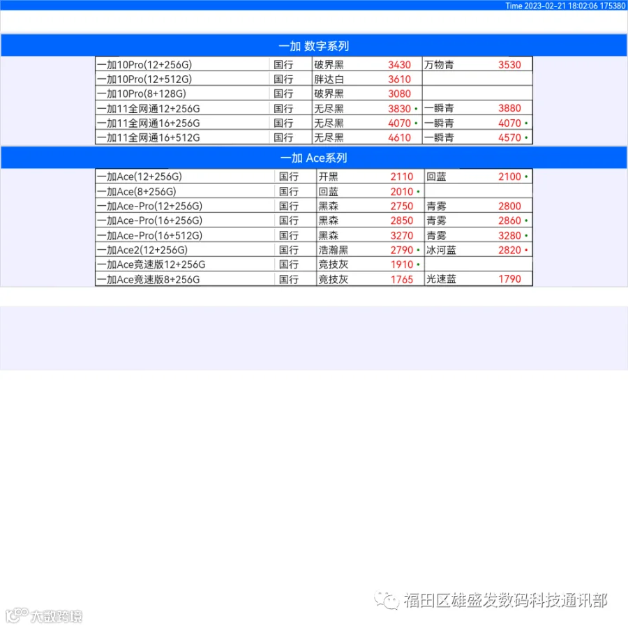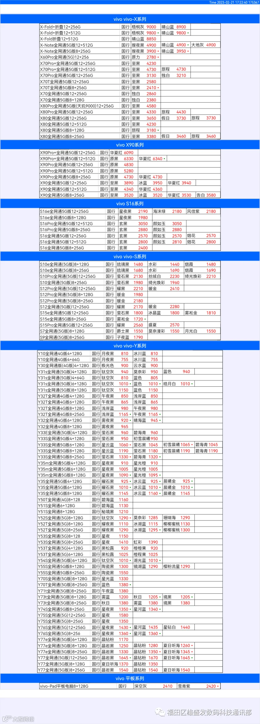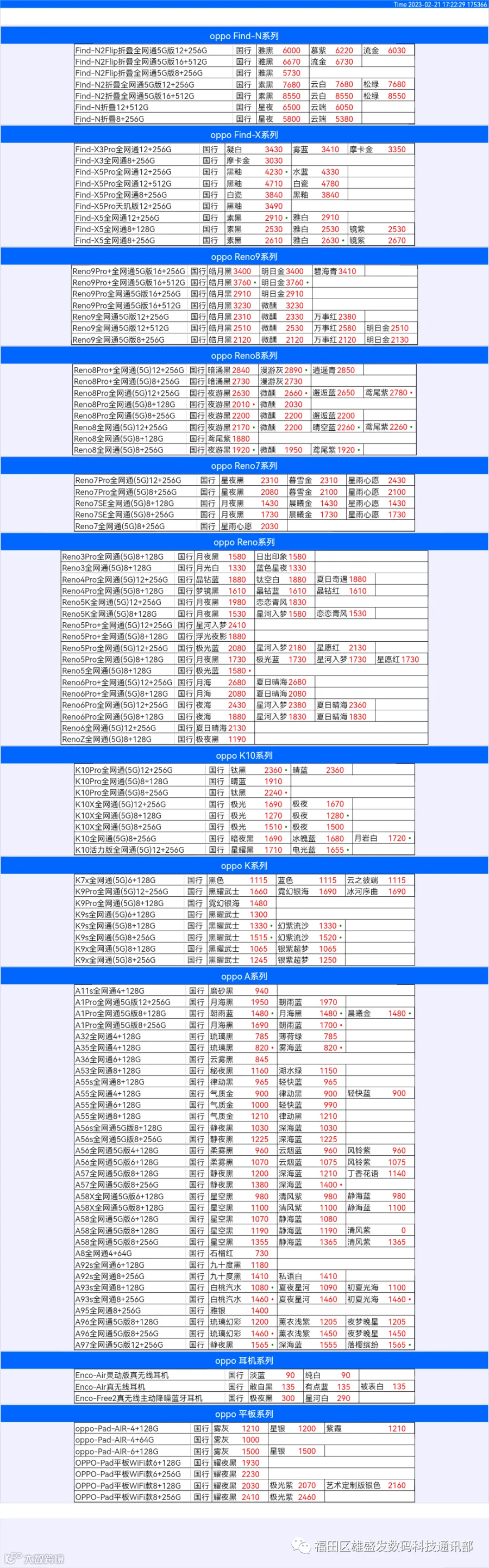 新机报价【2023年2月21日】OPPO   VIVO  IQOO   一加   真我 芯烨微 电子科技