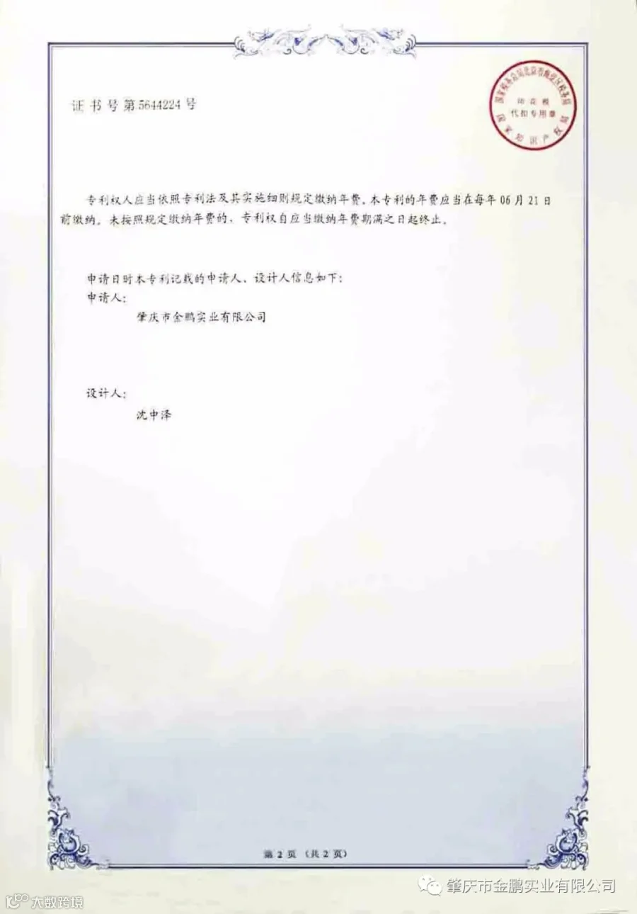 肇庆市金鹏实业有限公司也落实对知识产权保护,也从知识产权保护中受益,在良好的保护环境加速发展。