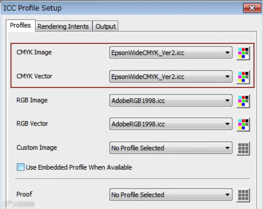 将EpsonWideCMYK_Ver2.icc设置为CMYK输入ICC;