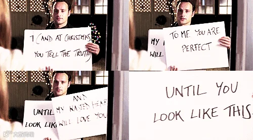 跳舞学不会?咳咳……字总会写吧!这段表白小象君觉得是所有电影里最经典也最好上手的。用替换的纸板来表达自己的心意,不用说话也可以很感人。