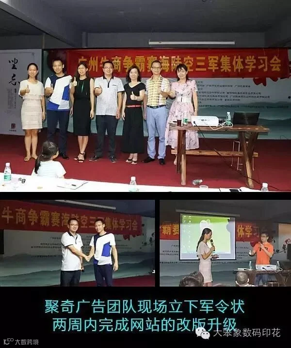 接7月9日广州牛商争霸赛中段总结会胜利召开一周后,在7月17日三军将士在同一地点——中国艺术家村,再次相约,举行三军集体学习会,为业绩冲刺阶段输入新的营销思想,本次学习会围绕:工作手册定制、网站扒皮、销售技巧 ,三大主题展开深入的学习和分享。大笨象数码团队努力充电中...