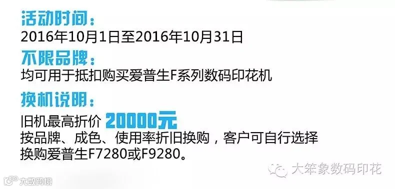 大笨象数码科技大力支持以旧换新爱普生大幅面喷墨打印机EPSON F9280、F7280...活动期限只有1个月