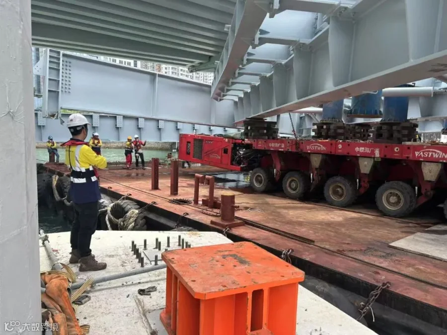 在福建平潭港,一场跨越海峡的超级工程正在蓄力——中联海广瀛团队协同上海振华、中远海特、平潭港务局、新加坡SATOMAS等多方力量,全力推进台湾洲钜1500吨龙门吊整体滚装装船准备工作。这座"钢铁巨人"的跨海之旅即将启程,敬请期待后续专题报道!