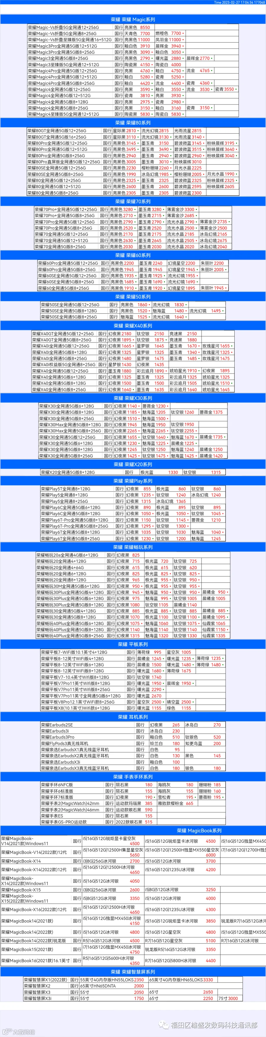 新机报价【2023年2月27日】华为   荣耀 报价 芯烨微 电子科技
