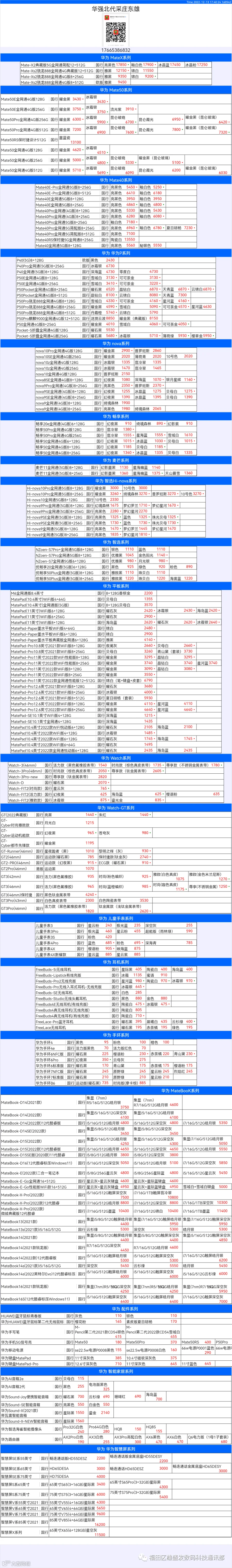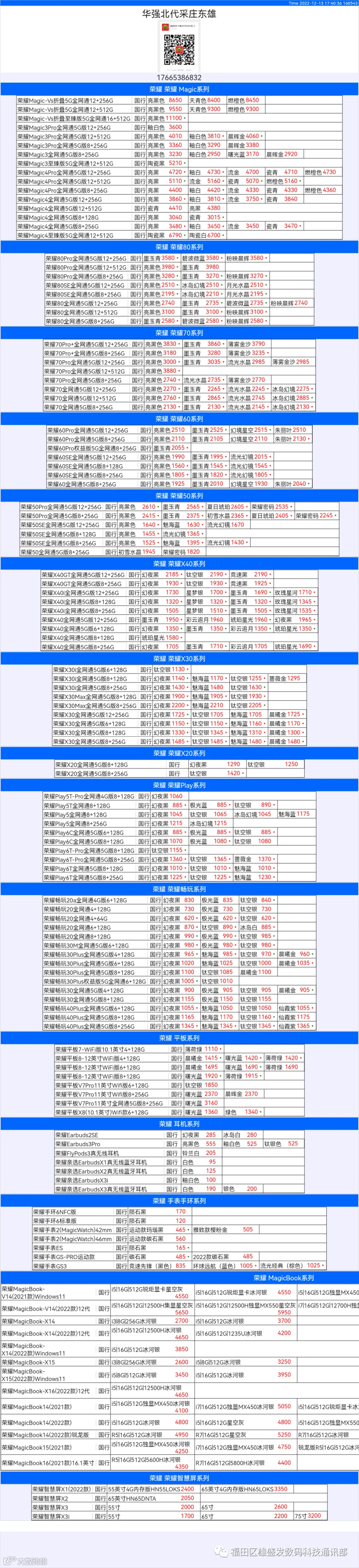 新机报价【2022年12月13日】华为   荣耀 报价 芯烨微 电子科技