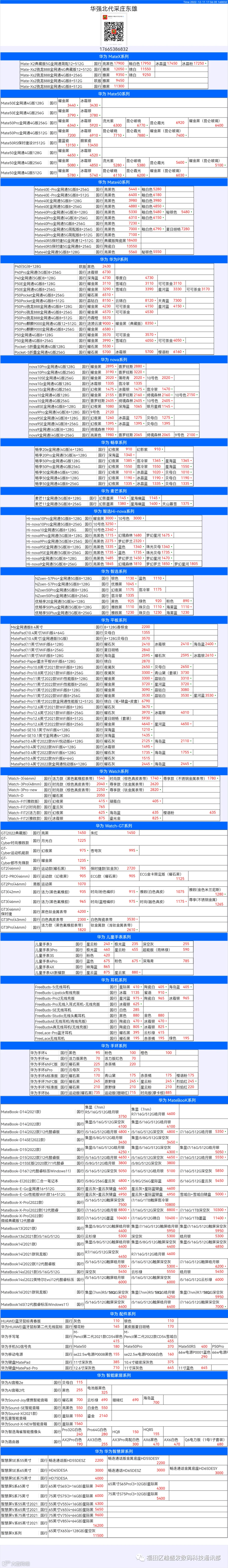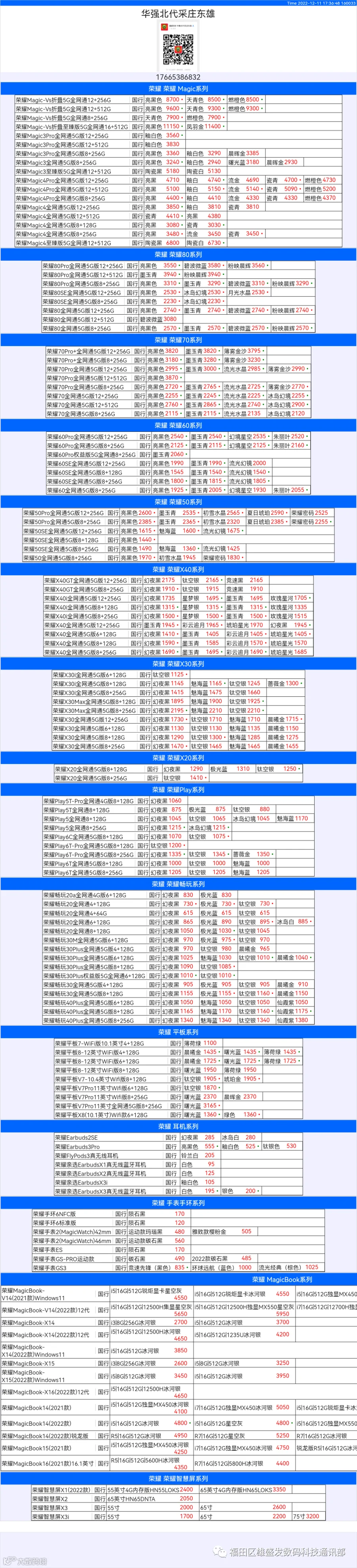 新机报价【2022年12月11日】华为   荣耀 报价 芯烨微 电子科技
