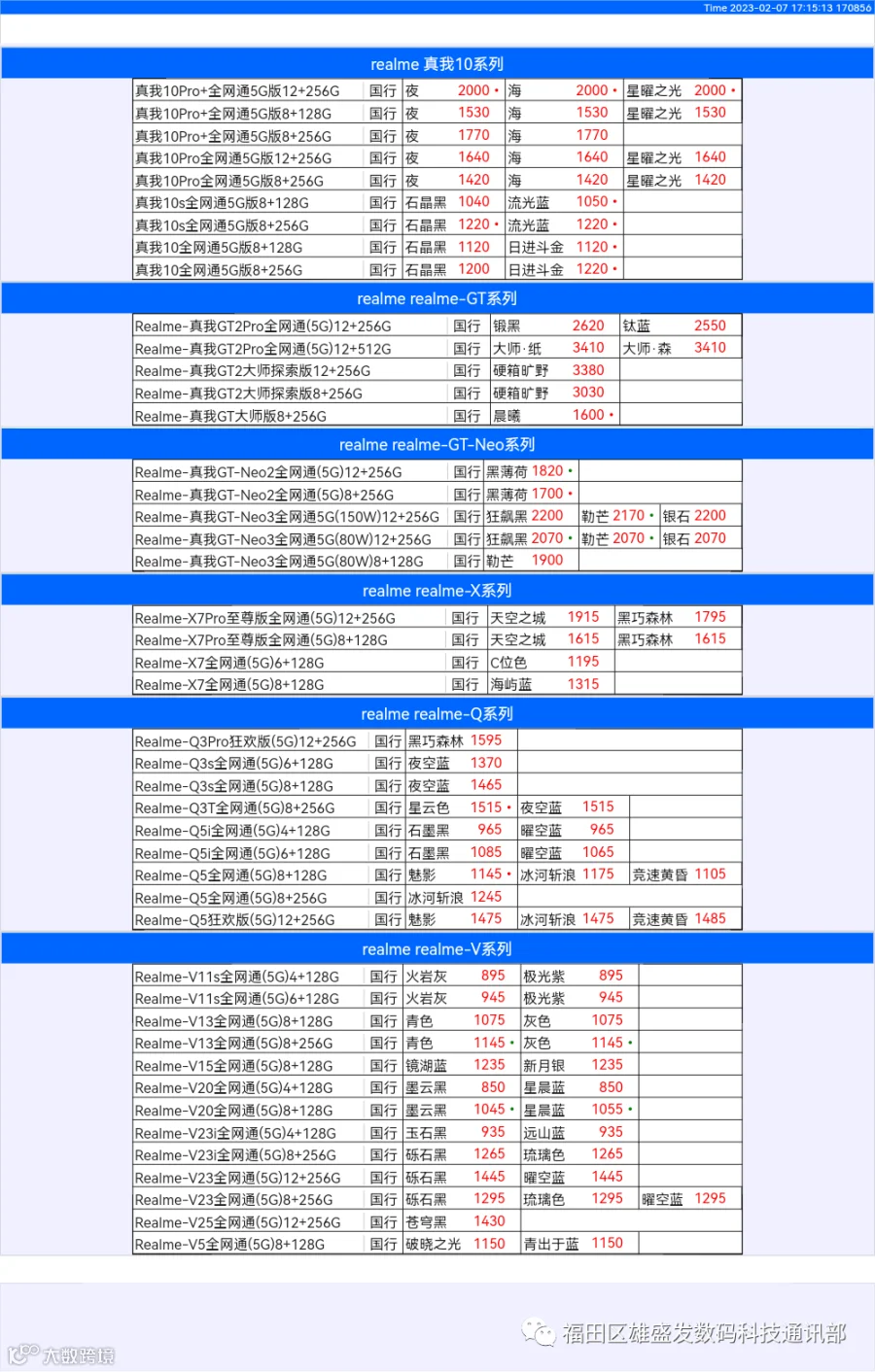 新机报价【2023年2月7日】OPPO VIVO IQOO 一加 真我