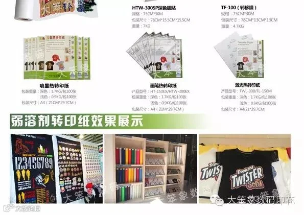 随着需求不断加强,人们对热转印印花的方案有了深入的探索,那么以下针对纯棉、深色面料印花进行深层次的剖析,根据用户的需求,我们大笨象热转印设备公司为广大用户们提供了实质可行的弱溶剂型热转印纸解决方案,为用户带来了可持续发展的前进动力。