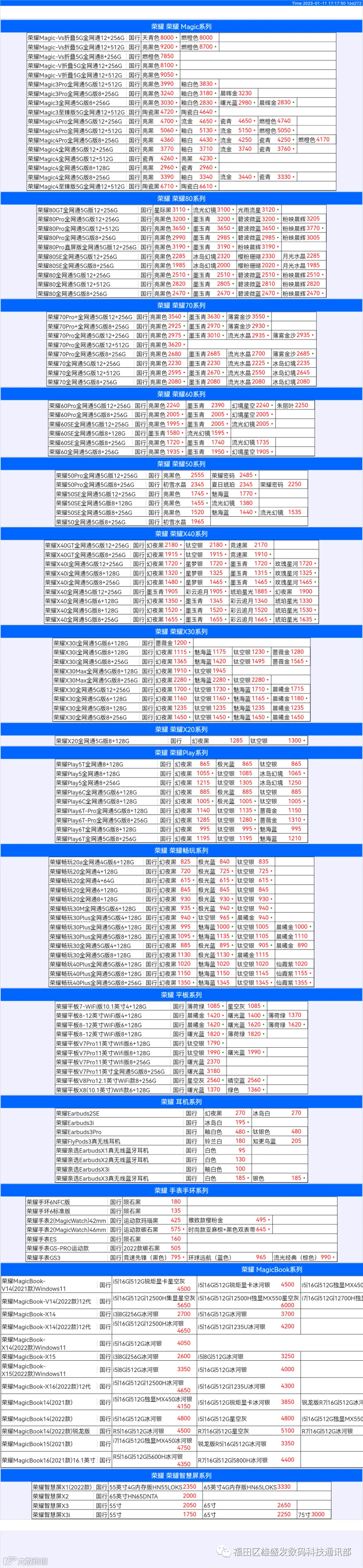 新机报价【2022年1月11日】华为   荣耀 报价 芯烨微 电子科技