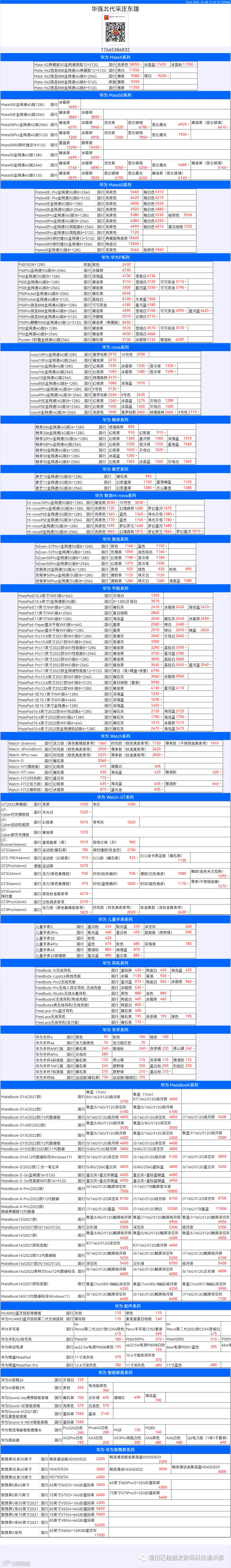 新机报价【2022年12月08日】华为   荣耀 报价 芯烨微 电子科技