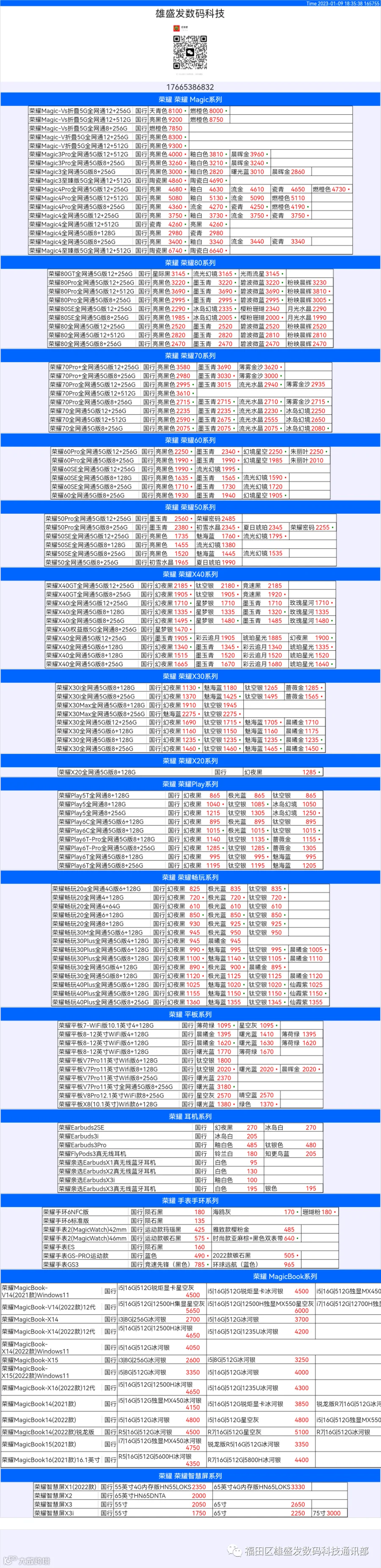 新机报价【2022年1月9日】华为   荣耀 报价 芯烨微 电子科技