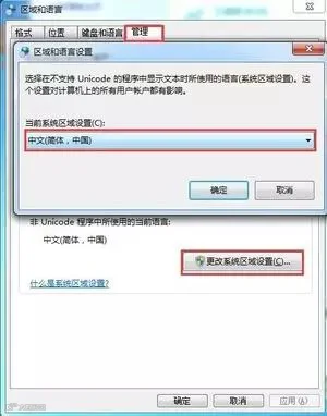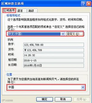 打开“设置”—“控制面板”—“区域与语言设置”,检查下图红色标记位置是否显示“中文(中国)”