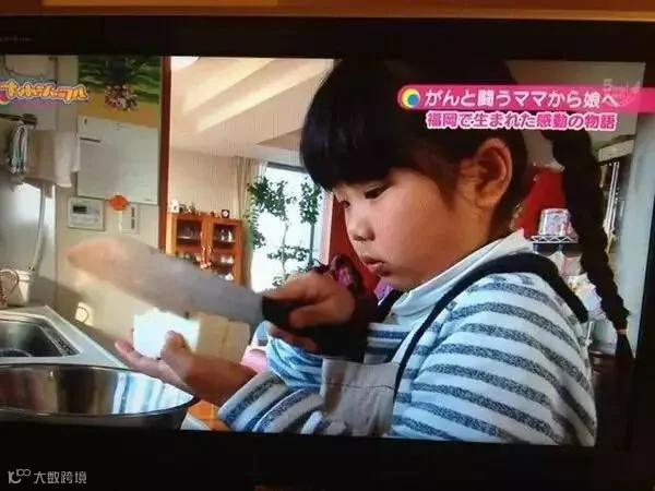 4岁的阿花,被妈妈“逼着”拿菜刀学做健康的味噌汤。尽管阿花用刀的样子看上去相当吓人,千惠还是忍住没出声,也没伸手……