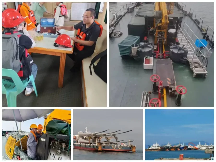 7月,“环保5”进场验收期间,超强台风“韦帕”直逼项目地点——阳江,这是船队首次在异地抵御台风,适合避风的锚地早已被占满,综合公司、业主单位、海事局多方意见,最后决定在高潮期航行三个多小时靠至北津港。