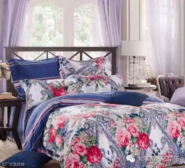 数码印花窗帘,一般会采用风景画,窗帘放下,风景就在眼前,看的人舒心愉悦,是最好的色彩表现。一些非常具有艺术欣赏价值的名画,也可以进入寻常百姓家了,做成墙画,真正的物美价廉。一些数码打印的环保墙纸也渐渐被市场接受,在家装、工装中应用地越来越广泛。近两年流行的天花软膜,同样可以应用喷墨打印技术,喷上“蓝蓝的天空”。