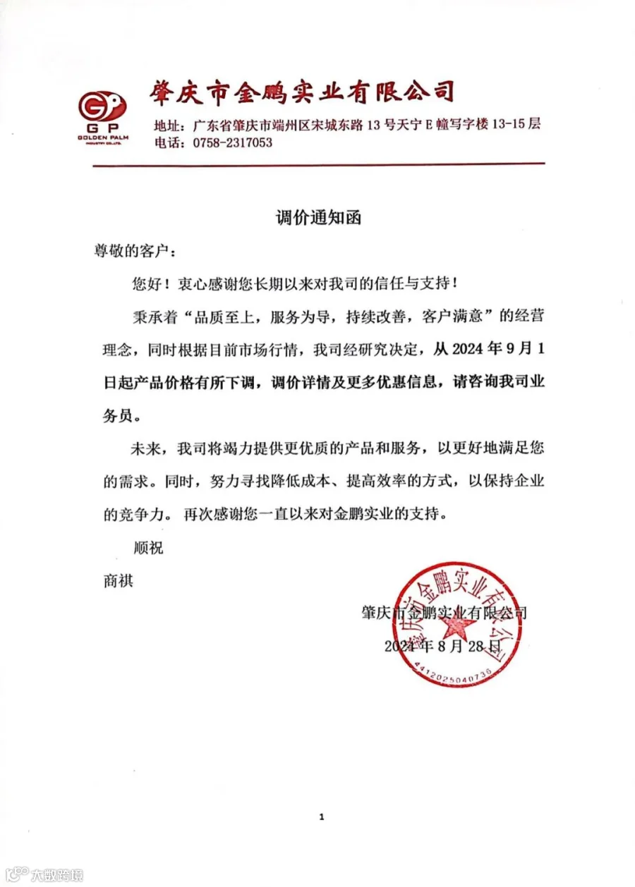 秉承着“品质至上,服务为导,持续改善,客户满意”的经营理念,同时根据目前市场行情,我司经研究决定,从2024年9月1日起产品价格有所下调,调价详情及更多优惠信息,请咨询我司业务员。