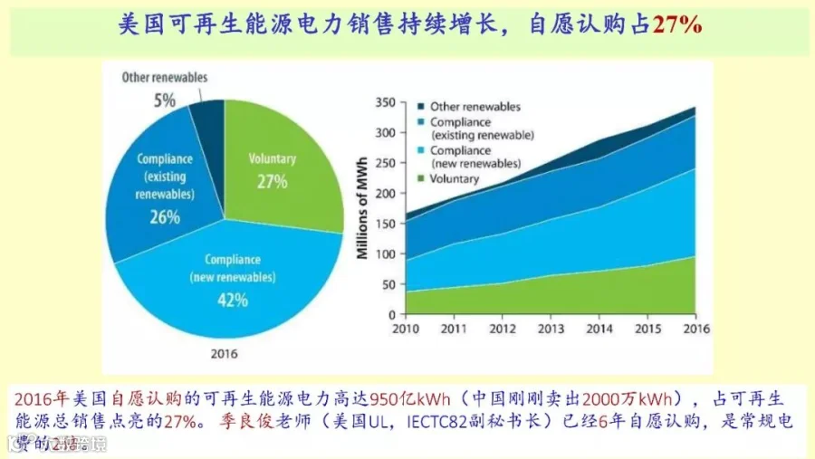 看人家美国,27%就是自愿认购的,是由企业、由老百姓自愿认购的,这个很厉害,人家执行得非常好。大家都用绿电,大家一宣传,天更蓝、水更青,我们自己贡献自己的一份力量,这应该是一个理念的问题。