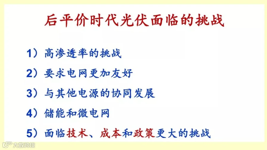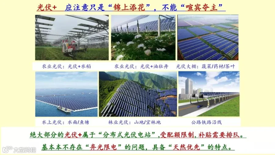 新的征求意见稿就要控制光伏的发展,原来我们分类是建筑光伏跟自发自用项目统统不要指标了,是放开的,补贴也能够继续到位。现在新的分类出来了,第一步超过50千瓦的户用光伏系统。第二就是小型光伏设施,只允许自发自己用,超过6兆瓦以上的这个是小型光伏电站,只允许自发自用,不允许余电上网,这是新的政策。新的政策的几个特点,我就写在这儿了。