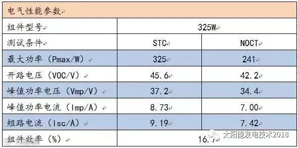 考虑到占地面积、银行放款条件以及全寿命周期的收益,此次示例设计方案选择1000片325W多晶组件。组件参数如下: