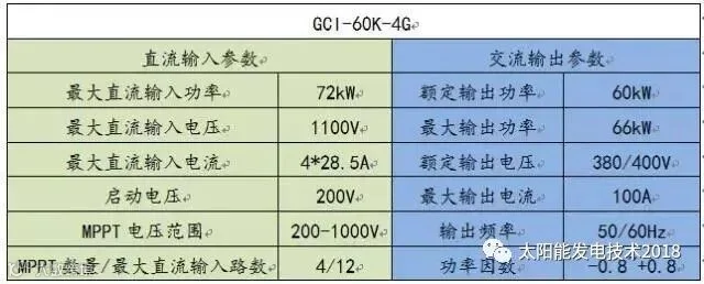 作为扶贫项目的设计,给光伏逆变器的性能提出了高需求,包括直流侧超配和交流侧过载能力。GCI-60K-4G是一款性价比很高的低压并网产品,具备4路MPPT每路MPPT最大可接入3串组件,直流超配可达1.2倍以上,交流输出具备1.1倍的过载能力,可以适用不同光资源区域的配置要求。其具体参数如下: