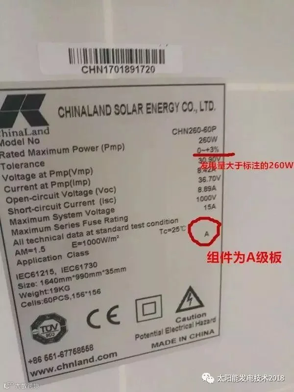 上图为组件背板的贴标,基本可以看出原厂组件的质量标准