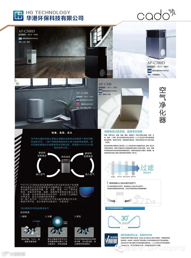 我们代理大金及CADO的空气净化器,高中低档,有商用家用和车载等多种款式,能快速有效清洁室内空气,过滤PM2.5、消灭病毒、清除甲醛。