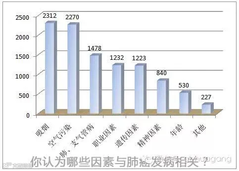 在本次调查中,超过80%网友认为空气污染是造成肺癌非常重要的原因,专家指出,这一点与实际情况较为吻合。