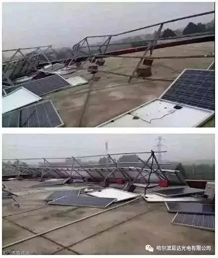 实际操作中,一些支架在选型或者安装中存在问题,导致遇到强风支架被吹飞。