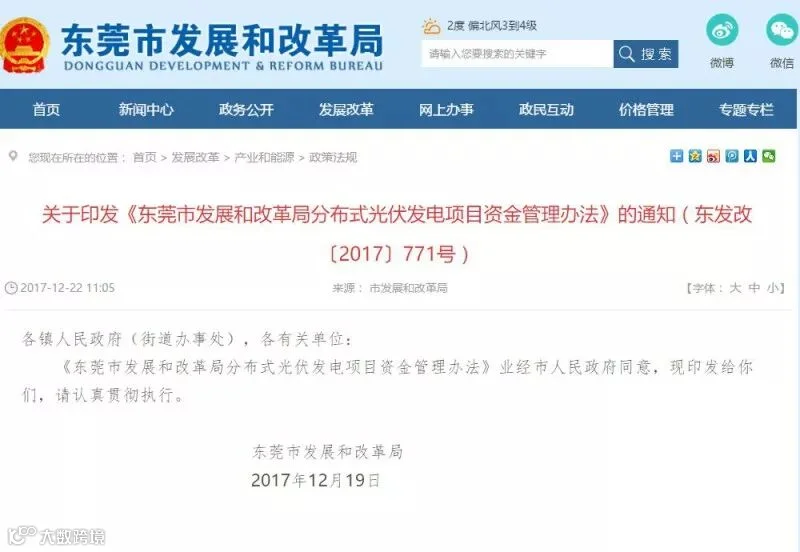 《东莞市发展和改革局分布式光伏发电项目资金管理办法》