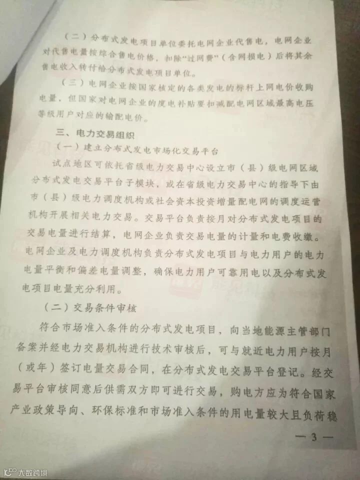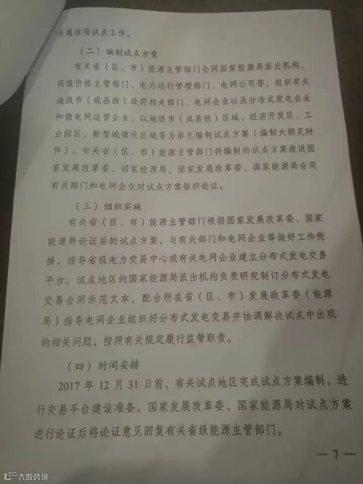 3) 2018年1月31日前,试点地区完成分布式发电交易平台建设、制定交易规则等相关工作,自2018年2月1日起启动交易;