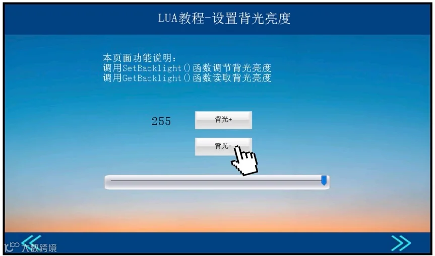 点击“背光-”按钮,亮度变暗,不断点