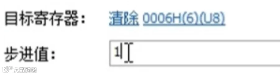 设置加减控件目标寄存器为参数显示的寄存器,设置步进值为1