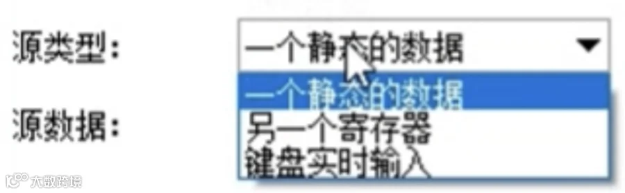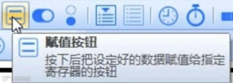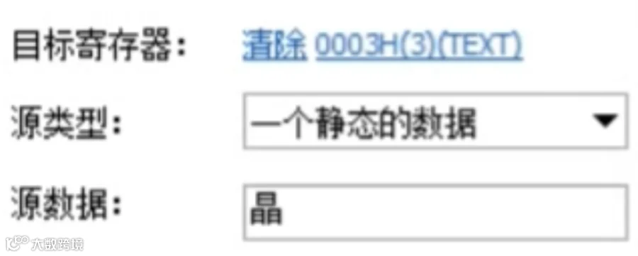 选择其中一个键盘第三个按钮绑定第二个显示控件的寄存器,选择静态数据,并设置为“晶”。