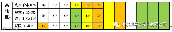 1.在考量测算结果时,对于采用“全额上网”模式的分布式光伏电站:(1)各年净利润均能偿还银行贷款以及保障无劳动能力贫困户补贴要求的,视为可行。(用A表示)(2)对于部分年份利润不能满足贷款偿还及贫困人口补贴标准,但若将历史留存收益用于还款及补贴的视为基本可行项目。(用B表示)(3)若不满足上述情况,但每年营运现金流(补贴完贫困户的剩余利润+折旧)可以偿还贷款本息的,视为现金流可行的项目[1]。(用C表示)(4)不满足以上所有情况的,视为不可行(用N表示)。