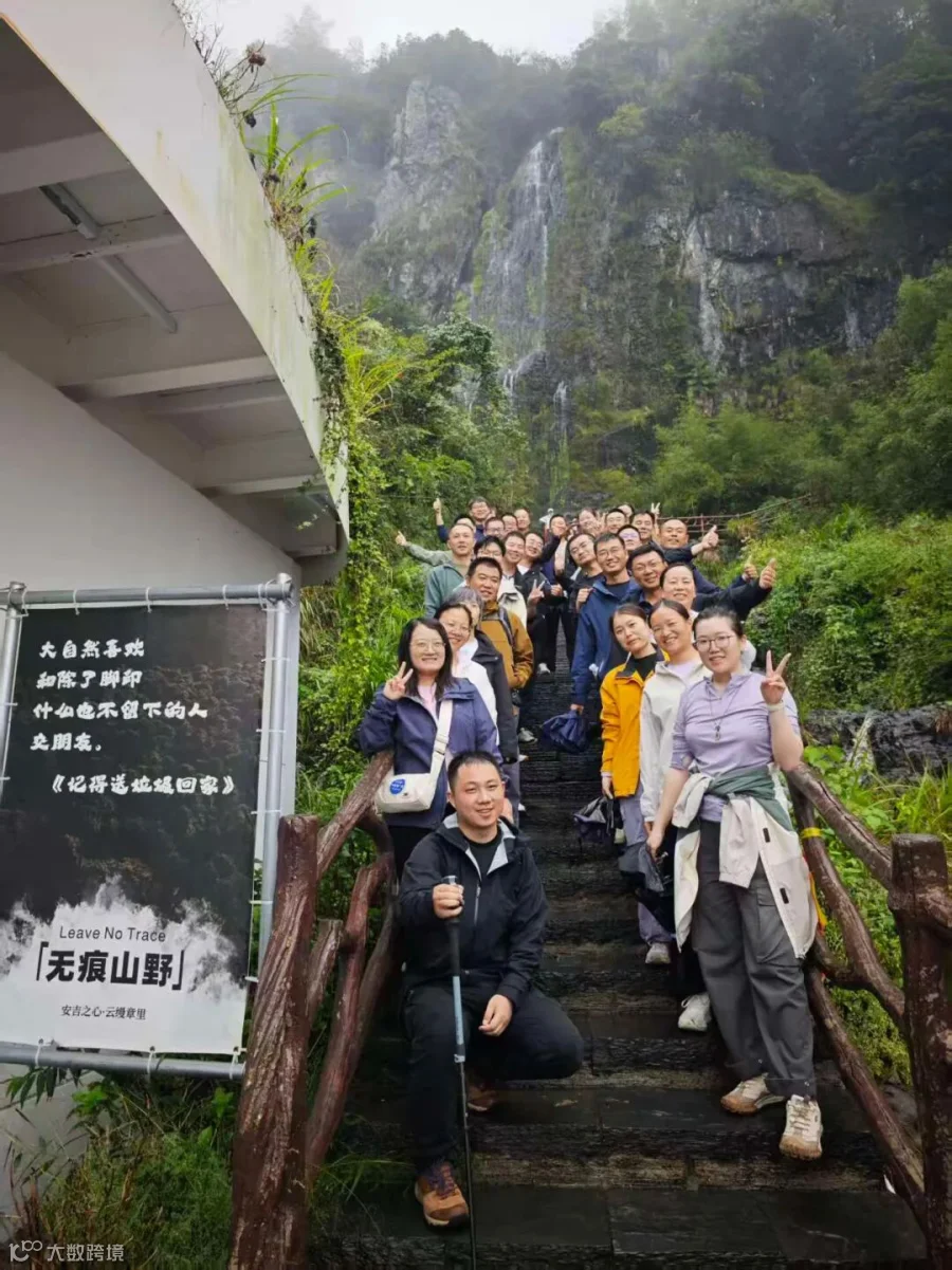 藏龙百瀑的山径在细雨浸润下更显陡峭湿滑,却未能阻挡我们前进的脚步。大家相互扶持,携手攀登,在潺潺瀑布声与雨声交织中,体验着别样的登山乐趣。每一步踏实的前行,都是对团队坚韧精神的最好诠释。