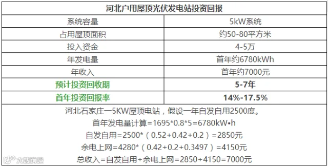 农村光伏发电系统,容量在3~10kW之间,前期投资稍大,但是从收益来看,还是值得投资建设的,电站建好后收益可以分三个方面:光伏发电补贴,卖电收益,节约电费。按照现在补贴、安装成本来算基本会在6-7年回本,而光伏电站的理论寿命25年,扣除还本金的时间,剩余10几年的时间都是纯收益。近日,与媒体报道装光伏都成为孝敬父母的一种有效方式了。还有人说,这种潮流比投资买房要实惠保险!