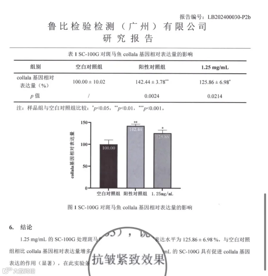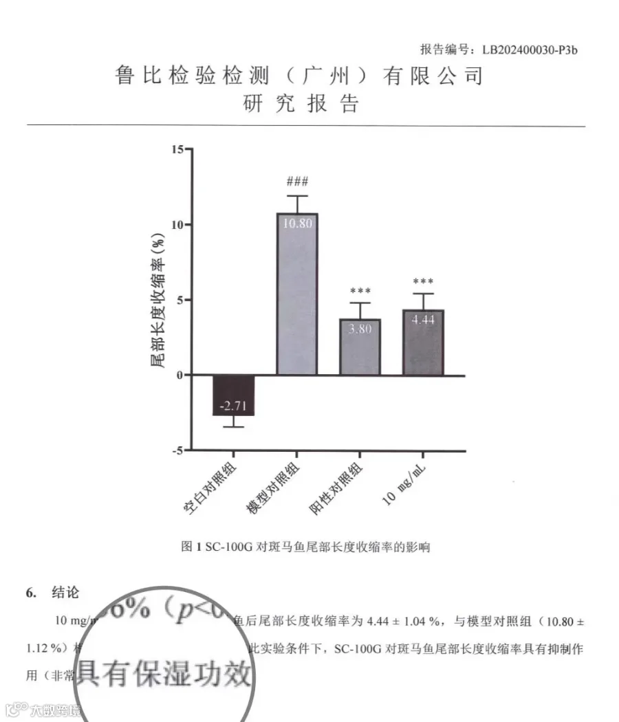 特含增稠原料具有第三方抗皱紧致,以及保湿功效报告。