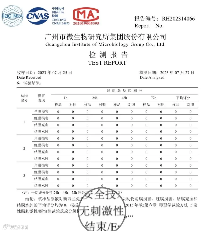 软性磨砂粒子急眼无刺激性报告