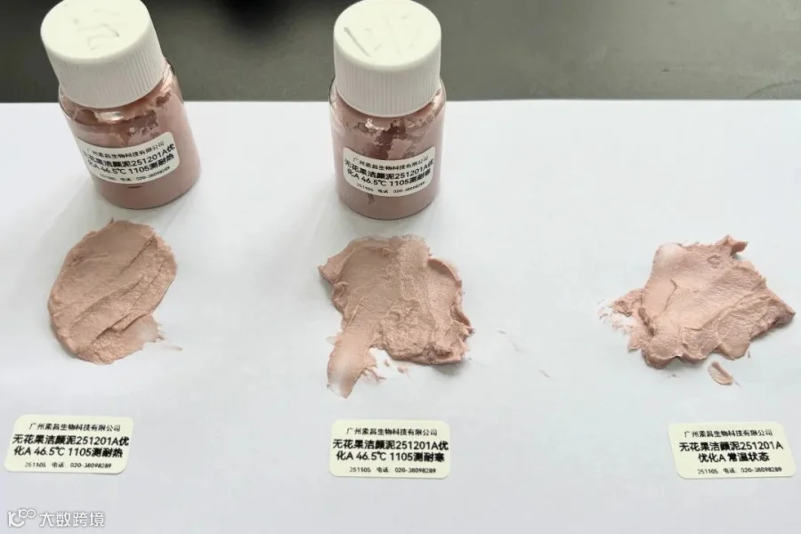 料体进行耐热46℃与耐寒5℃为期45天的稳定性测试,料体与常温放置料体无明显区别,稳定性效果极佳。