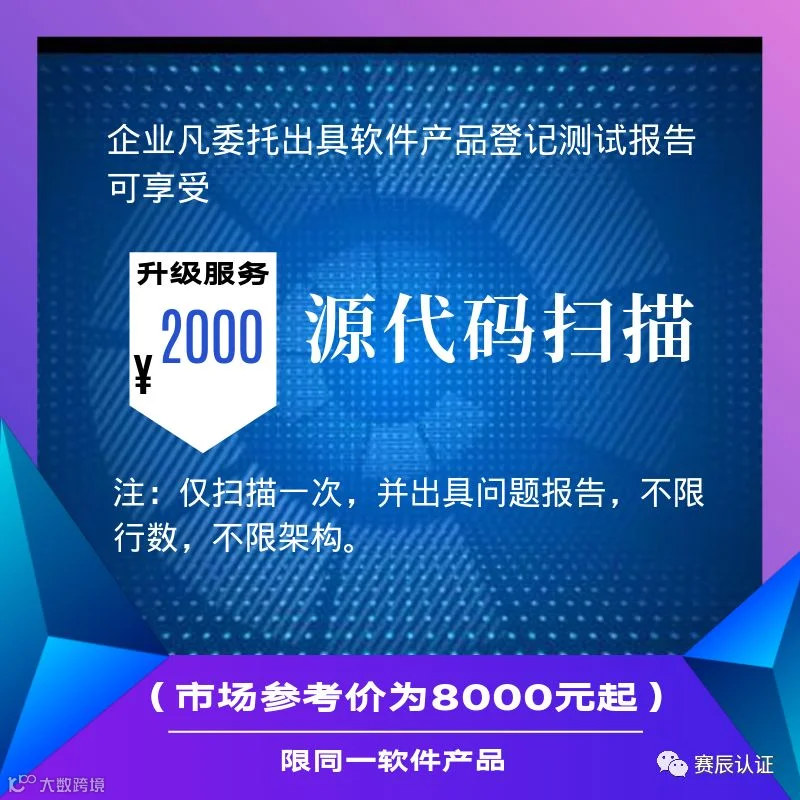 9月9日找小赛平台上线,优惠活动多多。不仅可集赞获好礼,还可参与源代码扫描巨惠活动!企业凡通过我公司委托出具软件产品登记测试报告,可升级服务,+2000元即可享受该软件源代码扫描,及出具问题报告(市场参考价为8000元起)。且该软件源代码扫描不限行数,不限架构。