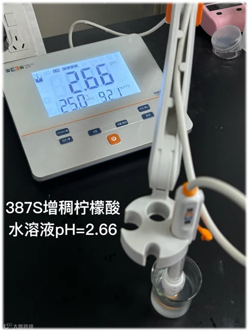 测试证明:在pH2.6的酸性条件下,SC-387S具有优异增稠效果,且性价比极高。