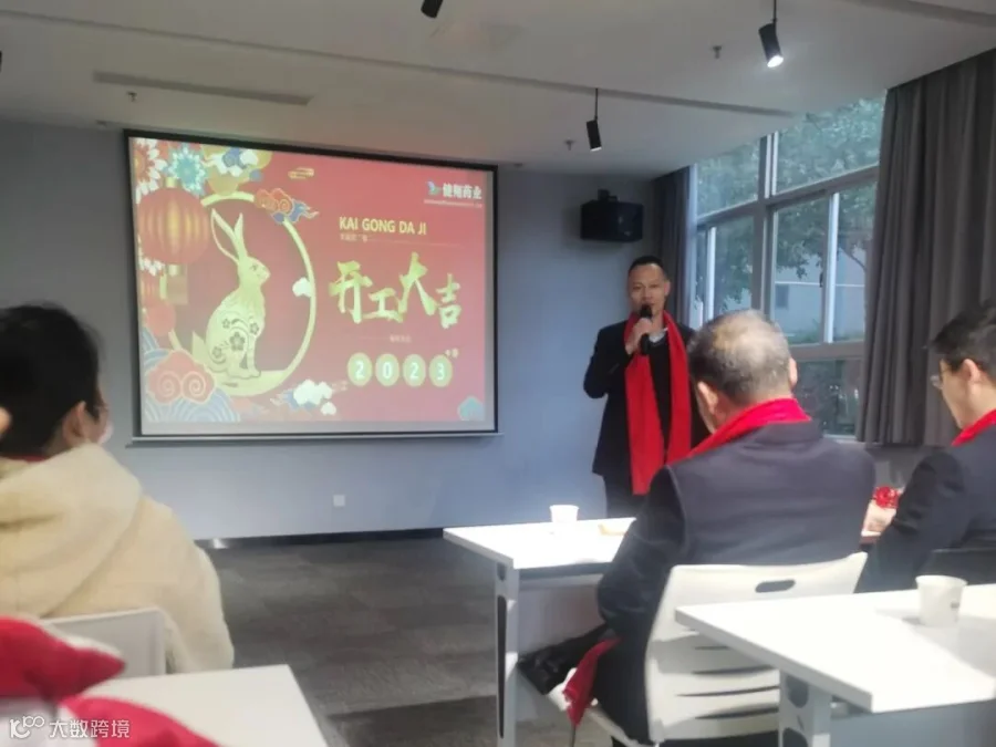 金虎辞旧岁,玉兔呈祥迎新春,开工大吉日日升。董事长凌华耀向大家致以新年的祝福,并向大家发放开工红包。董事长表示,兔年恰逢疫情的放开,新一年将有新景象,祝大家2023年开工大吉,金光灿灿业绩好,生意兴隆财源广,事业顺利发大财!