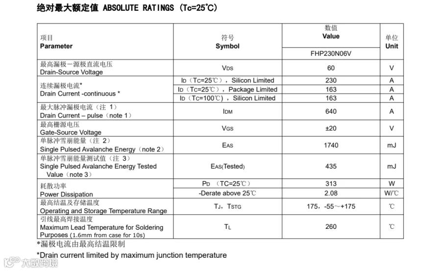 上述参数都是FHP230N06V能代换IRFB7537PBF作用于低压工频逆变器解决转换效率等问题。