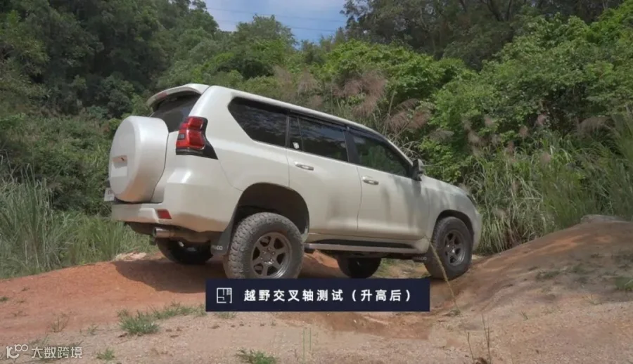 交叉轴测试中,因为升高后的LC150越野通过角更大,同时VFCA减震器使得悬挂行程更大,越野时能保证更好的轮胎接地,直接提升越野能力,交叉轴车轮打滑现象更少,来得更晚。