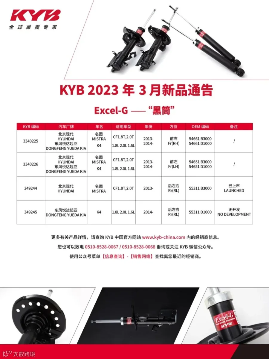 KYB 2023年 3月新品通告(Excel-G) KYB减震器