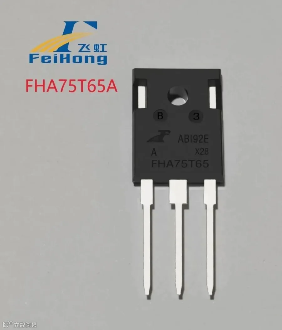 对于单相组串式光伏逆变器推荐使用飞虹电子FHA75T65A的IGBT单管来替代FGH75N65SHDT还因为其拥有高可靠性以及反向并行的快恢复二极管特性,Trench Field Stop technology(拖尾电流非常短、关断损耗低、出色的Vcesat饱和压降)、拥有正温度系数。