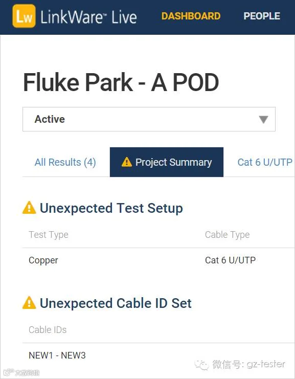 如果测试违反了意外限制,LinkWare Live 则会发出警告