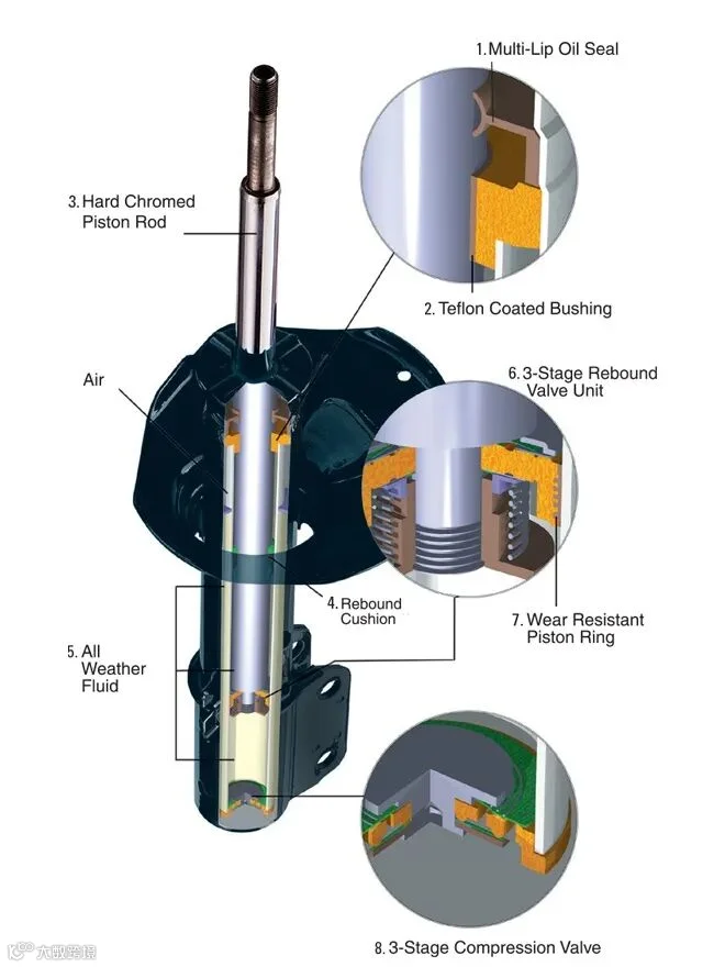 结构所带来的优势并不能停止KYB在减震器上精益求精的步伐,在细节上面,KYB也同样是力求完美。多层油封的设定,大大减少漏油可能性;具有聚四氟乙烯涂层的活塞杆,其摩擦系数极低,且具有抗酸抗碱的特性;高品质的阻尼油能够无惧四季的变化保持恒定的粘度。这一系列的高品质追求更是让本就耐用性足够出色的Premium减震器还能拥有更长的寿命。