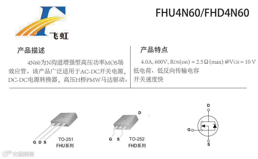 为什么说飞虹的这一款FHP4N60型号场效应管就能完美的匹配这一款FQP4N60场效应管参数的型号呢?