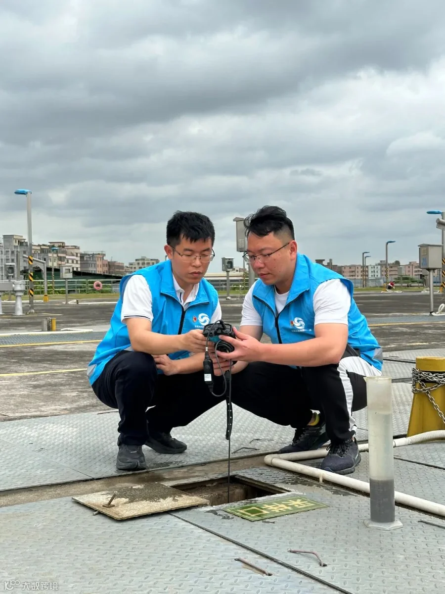 (技术管理人员在现场测试溶解氧水平)
